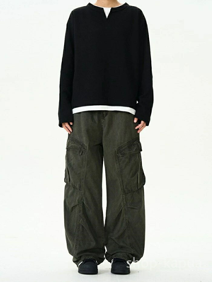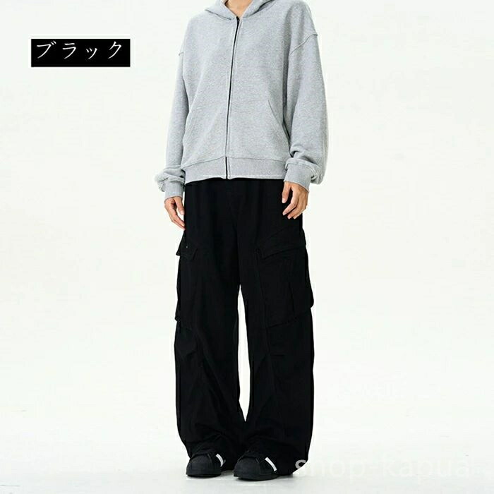 ワイドカーゴパンツ イージーパンツ ワ メンズファッション 続々登場 ネイビー ブラック グリーン グレー S M L XL 2XL 3XL