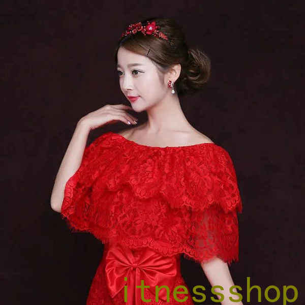 新生活 ボレロ 結婚式 ショール ウェ レディースファッション 早い者勝ち レッド ホワイト