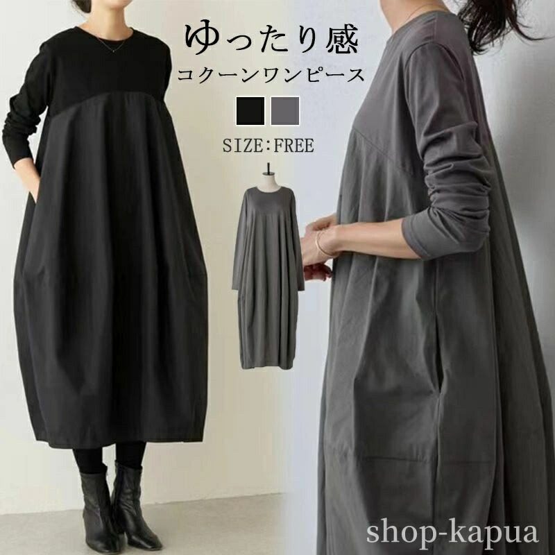 大きいサイ ワンピース 切り替え コク レディースファッション 続々登場 ブラック グレー