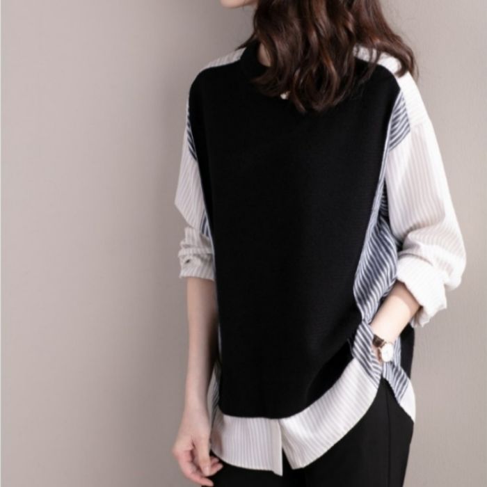 シアースリーブ ドッキングシャツ ボウタイシャツブラウス