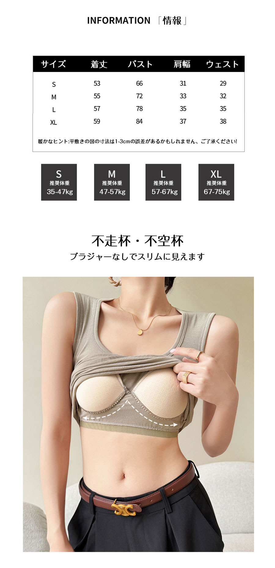 キャミソール綿 袖なし タンクトップ トップス キャミソール 特集 ブラック ホワイト ダークグレー グレー ベージュ S(35-47kg) M(47-57kg) L(57-67kg) XL(67-75kg)