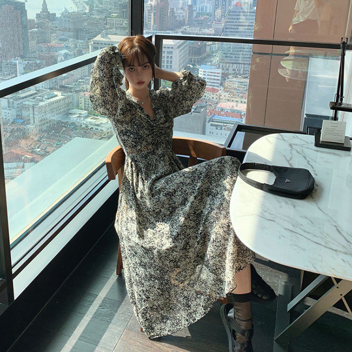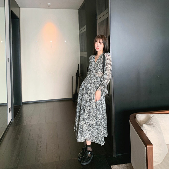 シフォンワンピース 春 花柄 ロング ワンピース 超目玉商品