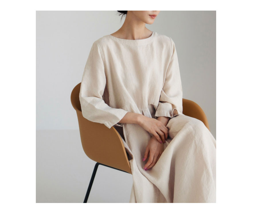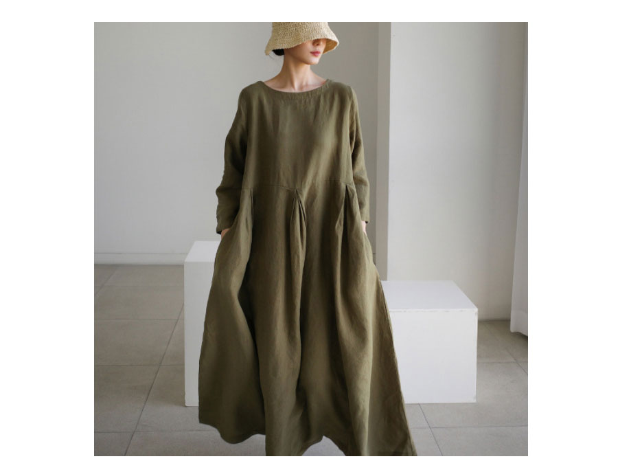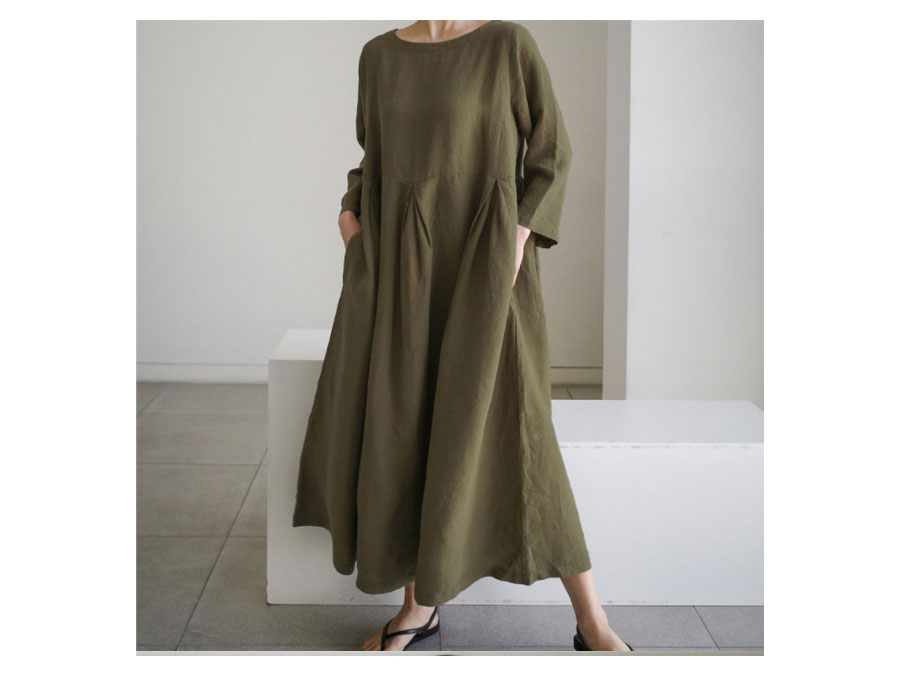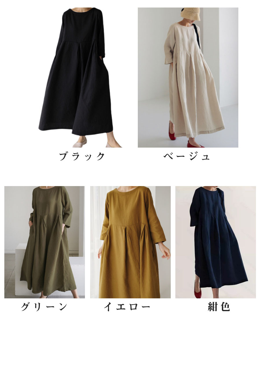 ワンピース フレンチ スリーブ ロング ワンピース 続々登場 ブラック ベージュ グリーン イエロー 紺色 S M L XL