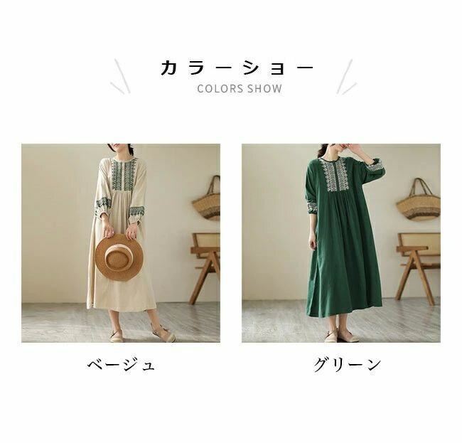 ロングワンピ レトロ ハイウエスト エ ワンピース 超目玉商品 ベージュ グリーン M L XL 2XL