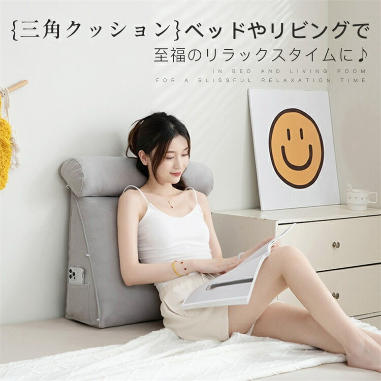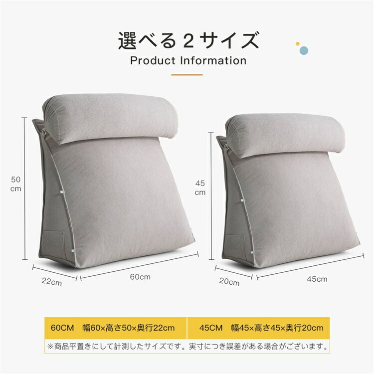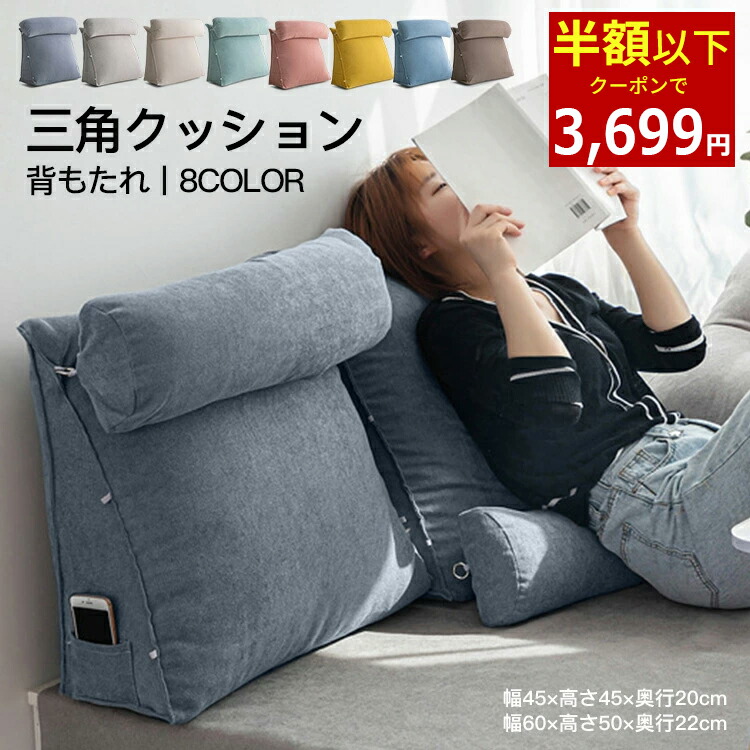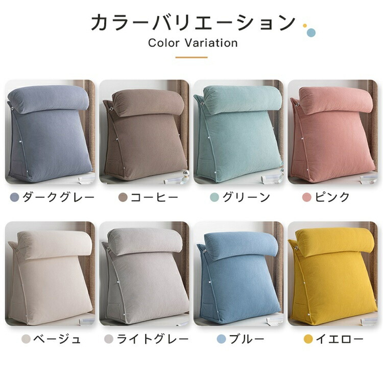 三角クッション 腰痛 やわらか 妊婦 ダークグレー コーヒー グリーン ピンク ベージュ ライトグレー ブルー イエロー 45cm(幅45×高さ45×奥行20cm) 60cm(幅60×高さ50×奥行22cm)