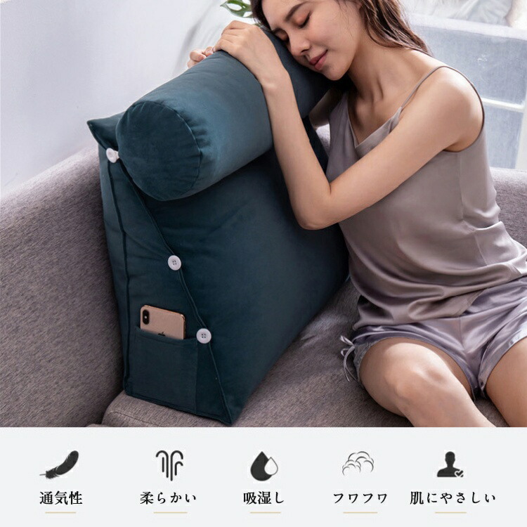 三角クッション 腰痛 やわらか 妊婦 ネイビー ダークパープル ヒスイ緑 グレー ダークグリーン ダークピンク コーヒー ライトシャンパン 45cm(45*45*20cm) 60cm(60*50*20cm)