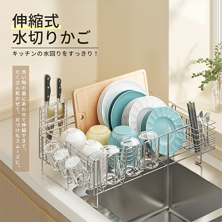 水切りラック 伸縮式 ステンレス 水切 キッチン用品 食器 調理器具 続々登場