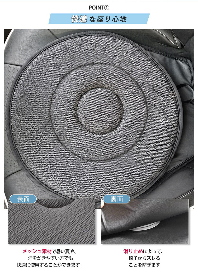 回転クッション 車用 シートクッション レッド ブラック ダークグレー コーヒー ワイン ベージュ