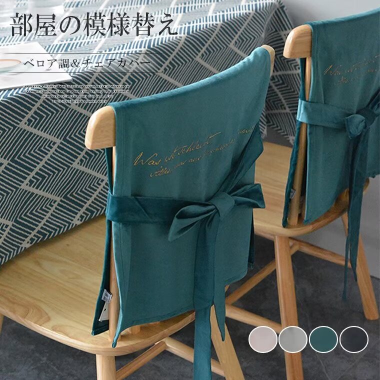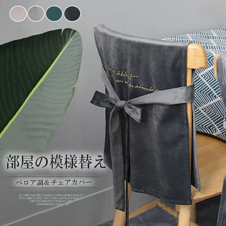 全4色 ベロア調 チェアカバー 背部用 ダークグレー ライトグレー ピンク グリーン 45cm×40cm 50cm×45cm