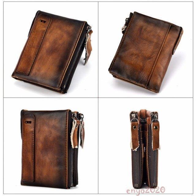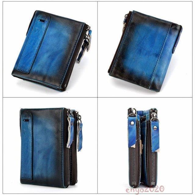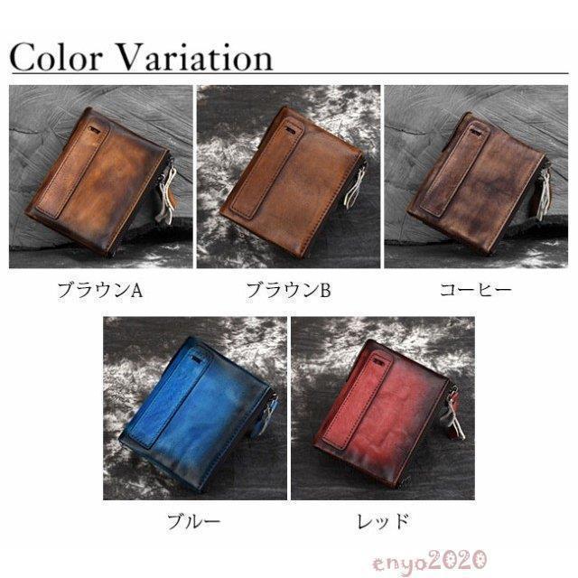 新作 メンズ二つ折り財布 本革 レザー スポーツ アウトドア 新作 ブラウンA ブラウンB コーヒー ブルー レッド