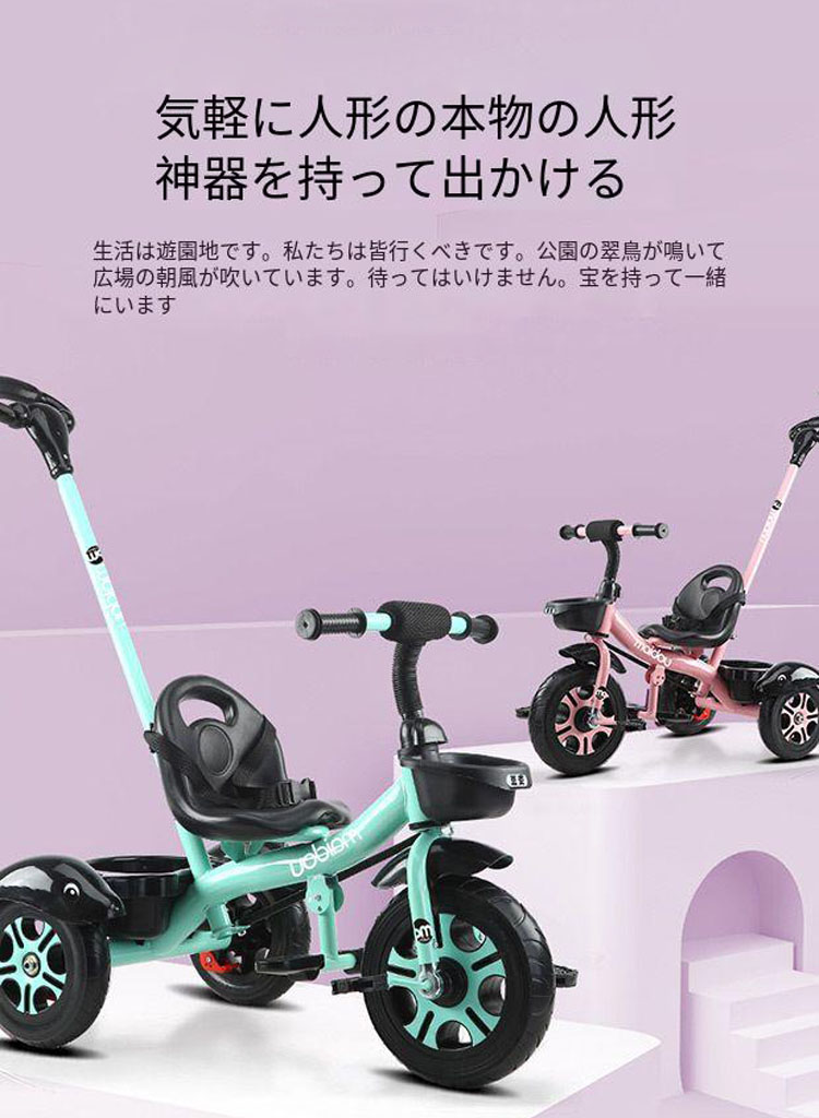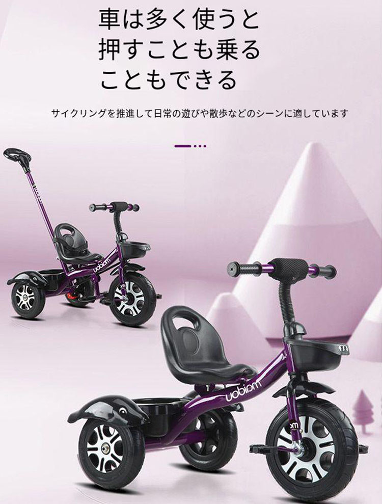 子供用三輪車 1~3~6歳 三輪車のり おもちゃ ゲーム 通販 米の色 ピンク ブルー パープル ホワイト 手押し米色 手押しピンク ハンドプッシュ ブルー 手押しパープル ハンドプッシュホワイト