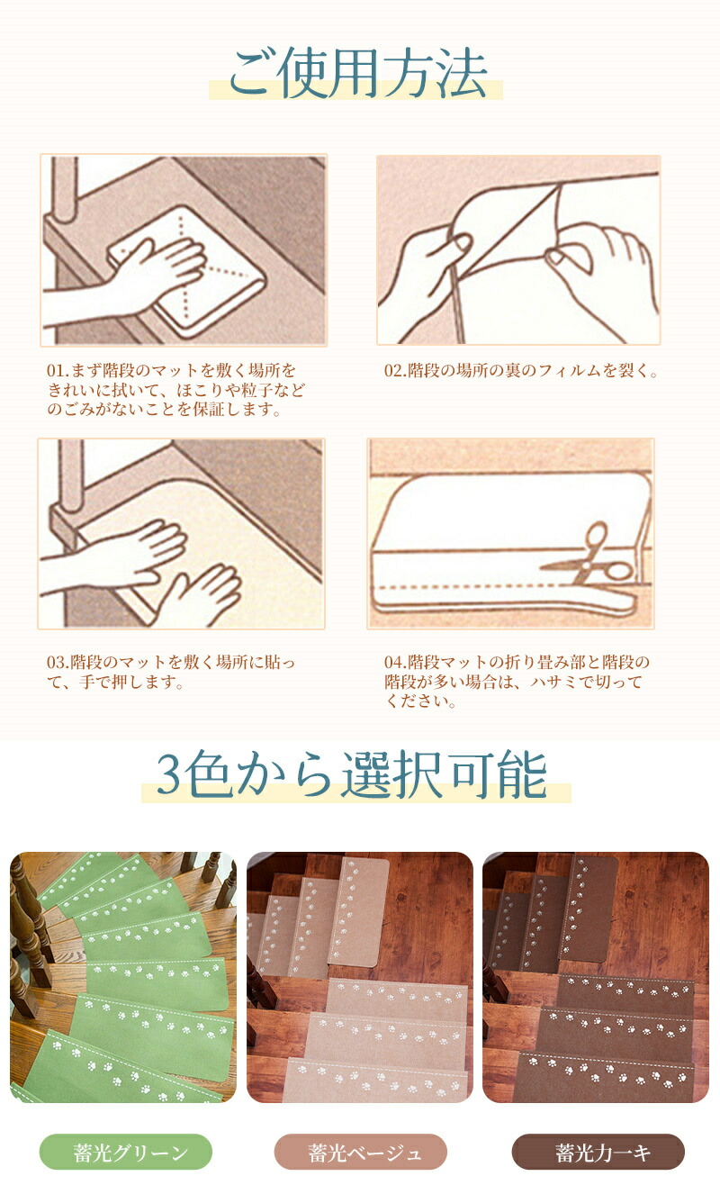 階段マット 5枚10枚15枚セット 滑 ベージュ ブラウン グリーン 5枚 10枚 15枚