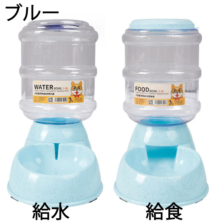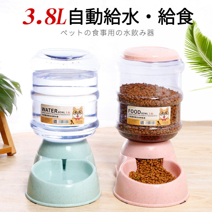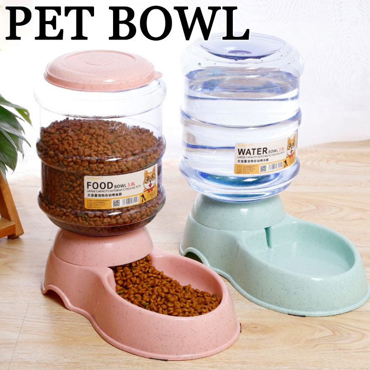 ペットボウル 3.8L 大容量 自動給 給食 給水 ピンク グリーン ブルー グレー