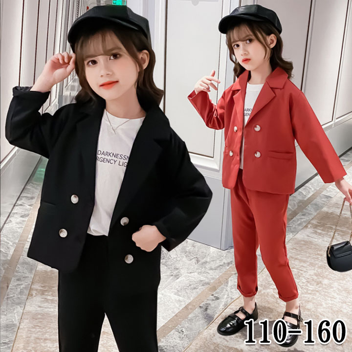 入学式 女の子 スーツセット かわいい キッズ ベビー マタニティ 豊富な品揃え レッド ブラック 110 120 130 140 150 160
