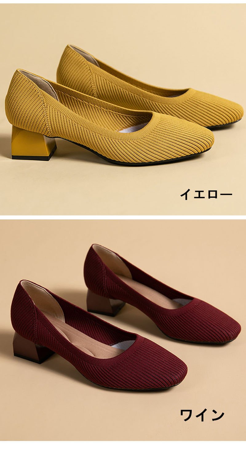 ニットパンプス 靴 パンプス 痛くない 靴 早い者勝ち ブラック カーキー ベージュ グレー ネイビー ブラウン ワイン ダークグリーン イエロー 22.0 22.5 23.0 23.5 24.0 24.5 25.0 25.5 26.0 26.5