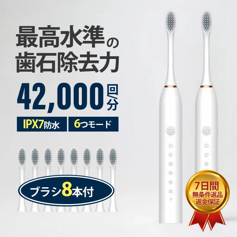 防水設 IPX7 歯ブラシ 超音波 本体 充電式 替えブラシ8本付き 替えブラシ 電動歯ブラシ 音波歯ブラシ
