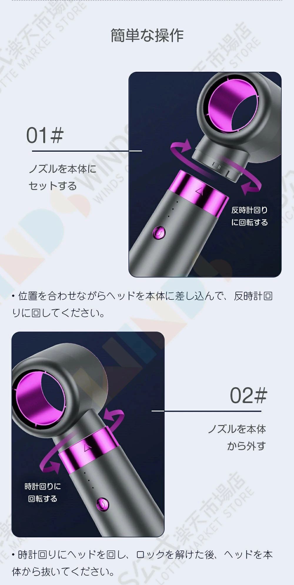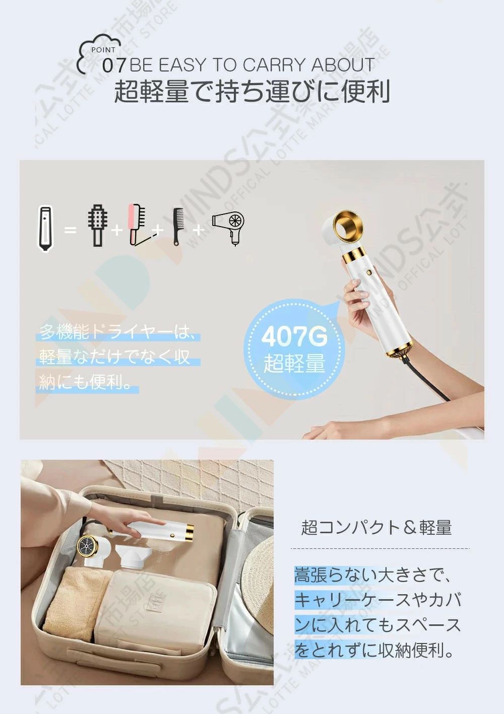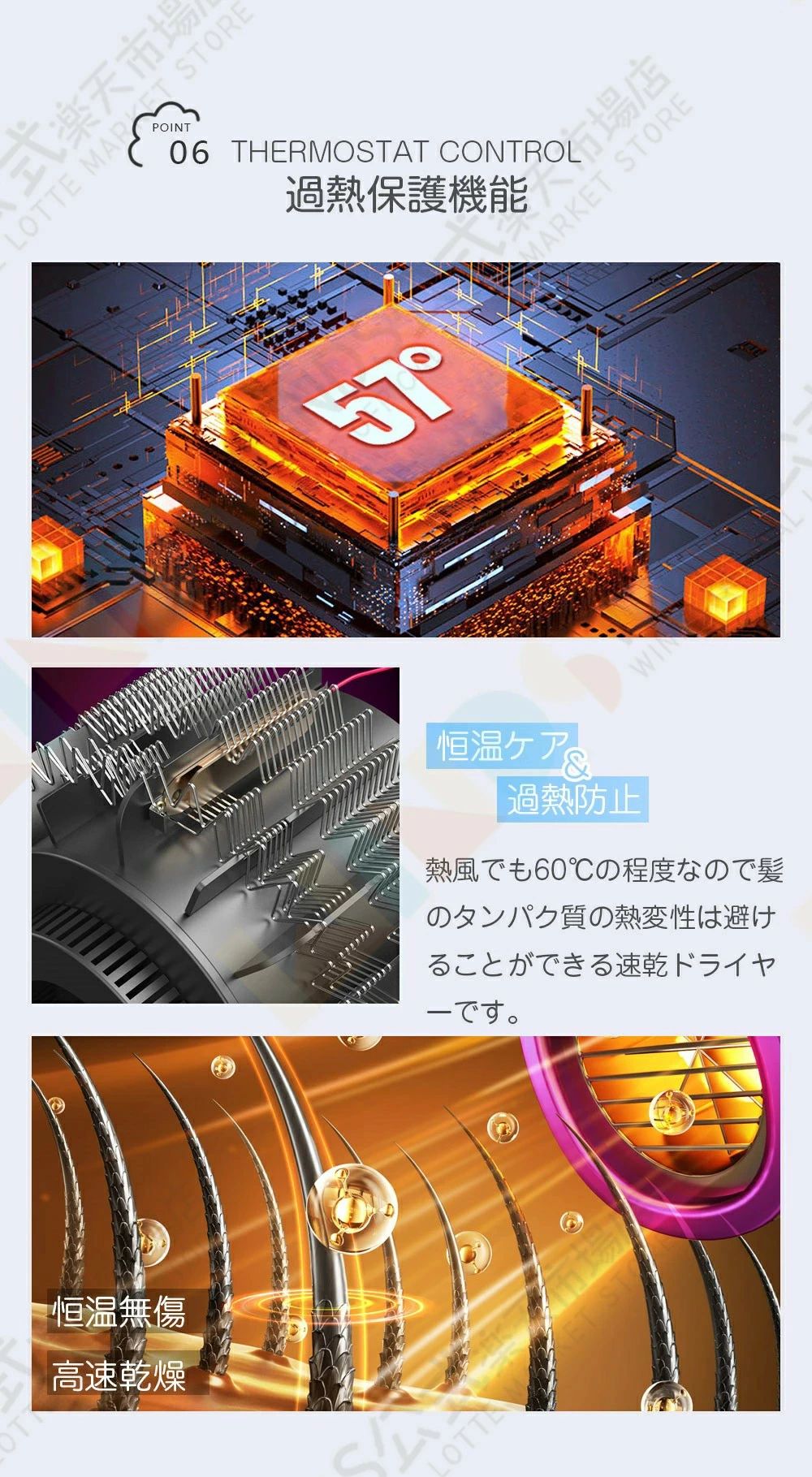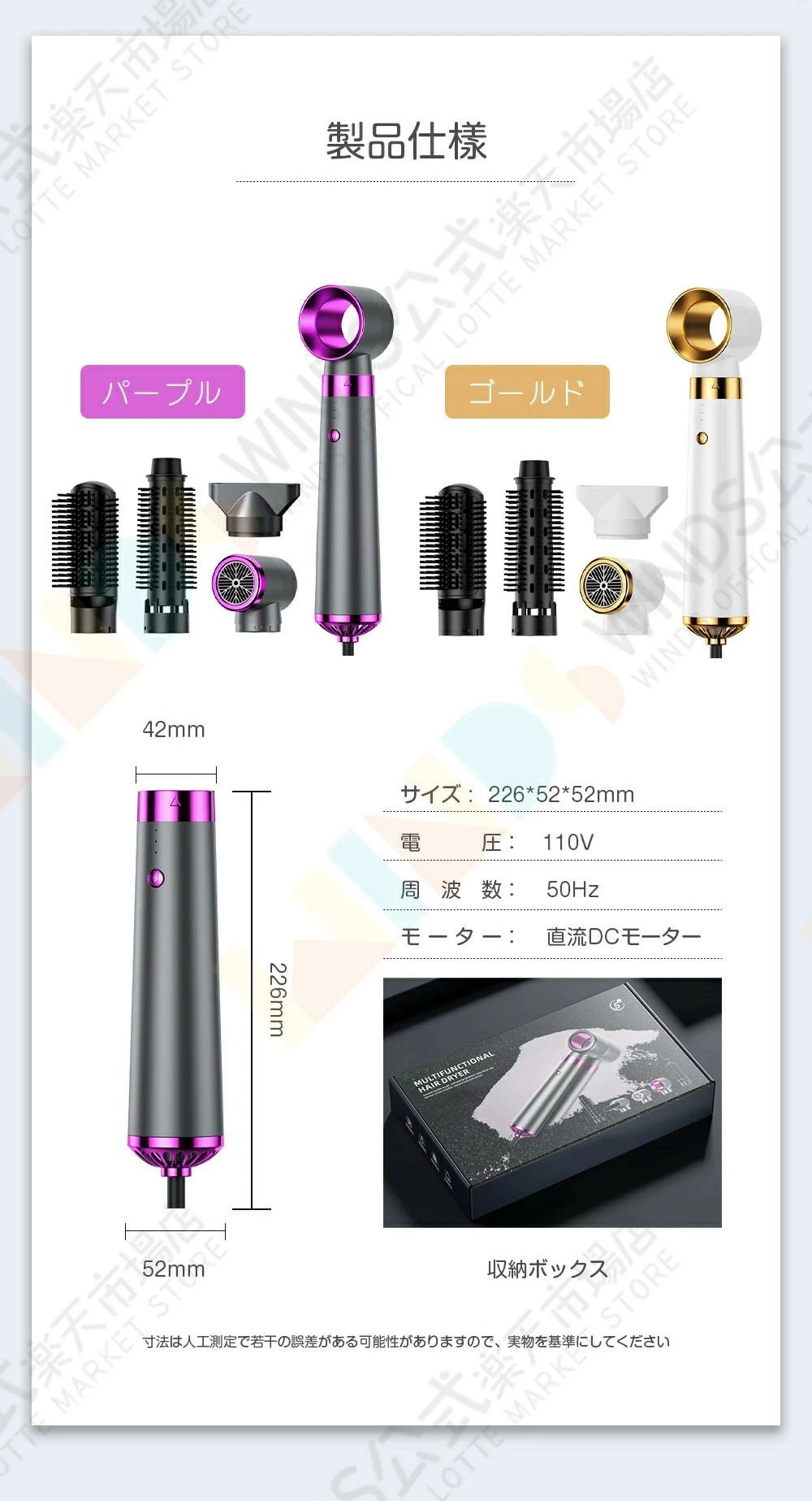 5IN1 ドライヤー 大風量 速乾 ノ ゴールデン パープル
