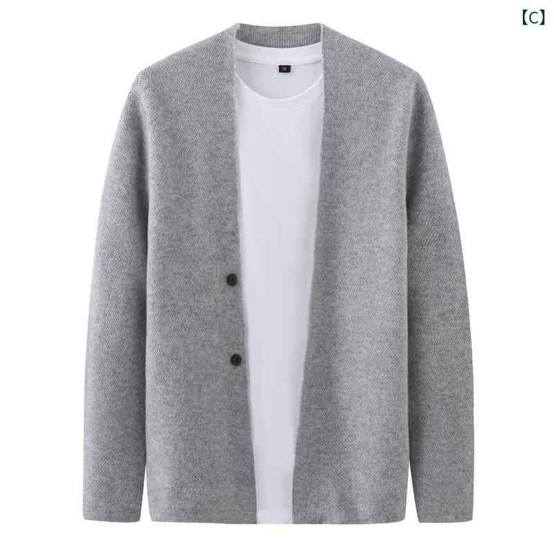 カーディガン メンズ 上質 ウール10 A:黒 B:花藍 C:浅灰 D:浅駝 E:シャンパンブラウン S M L XL XXL