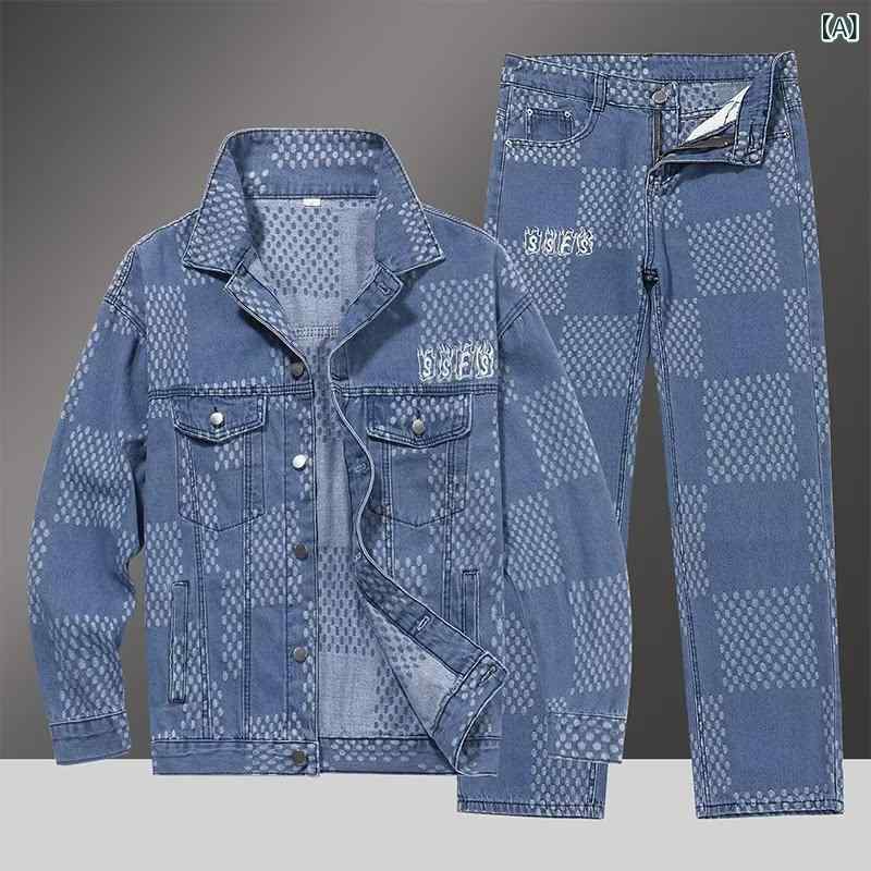 デニムセットアップ メンズ 春秋 ジャ メンズファッション 続々登場 M L XL 2XL 3XL