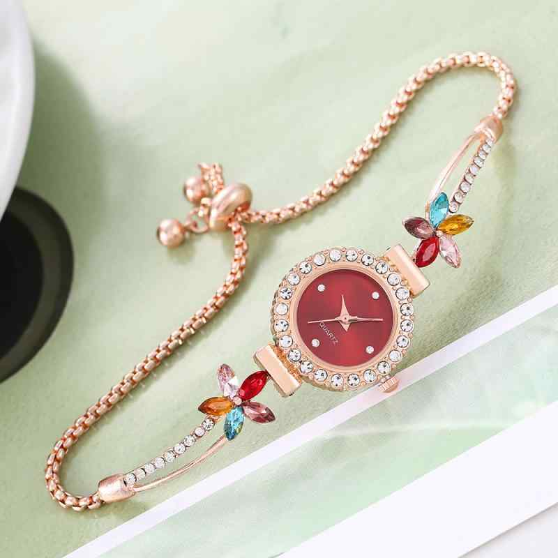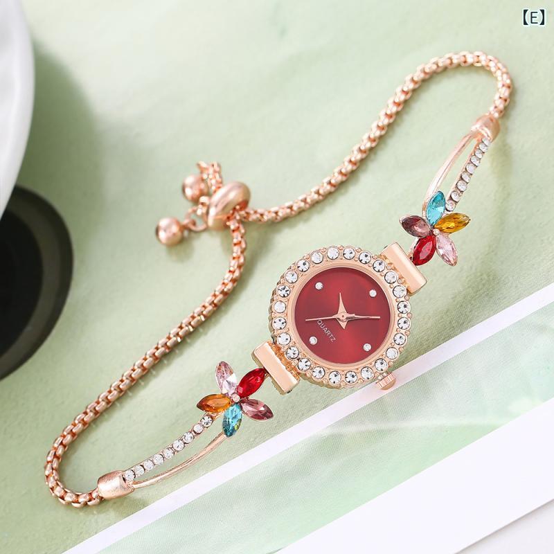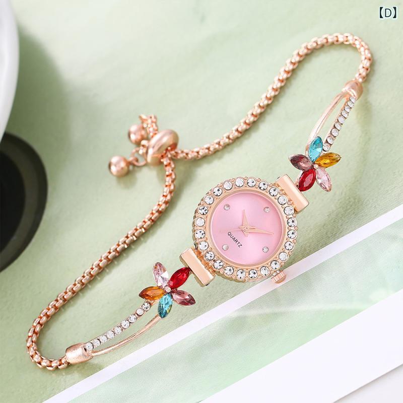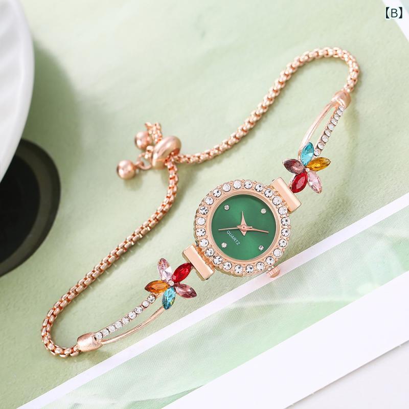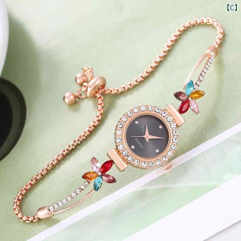 腕時計 レディース クォーツ 花柄 カ A:白 B:緑 C:黒 D:ピンク E:赤 F:青