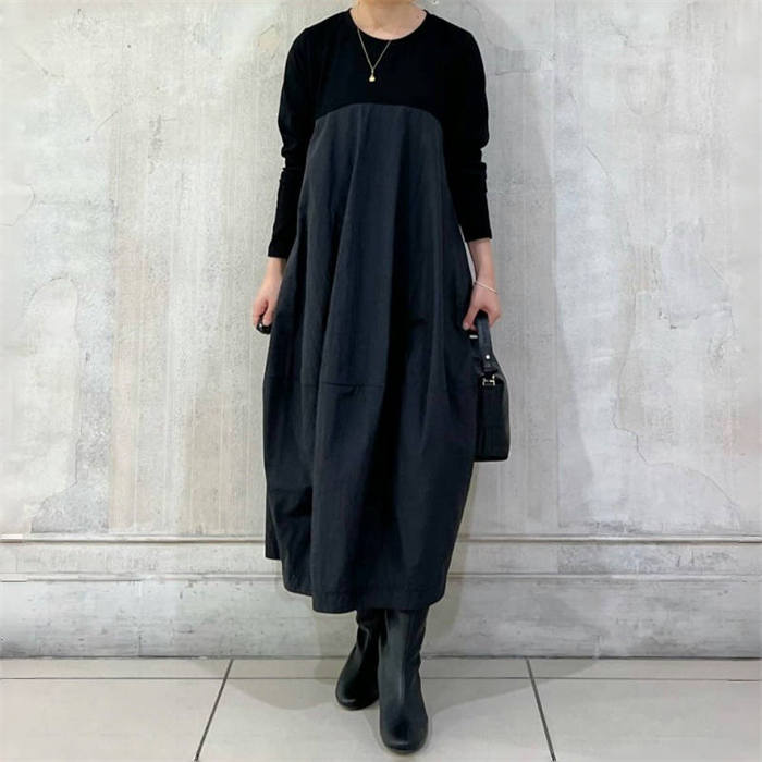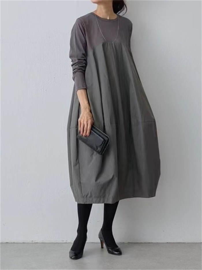 バルーン ワンピース レディース 秋 レディースファッション 超目玉商品 グレー ブラック 紺色