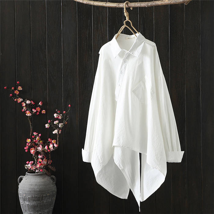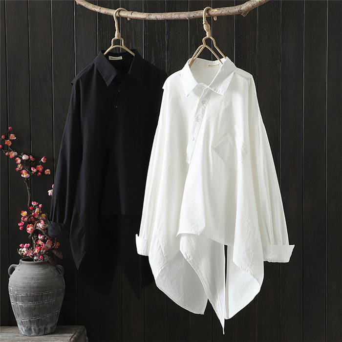 アシンメトリー シャツ 長袖 シャツブ トップス シャツ ブラウス 超目玉商品 黒 白