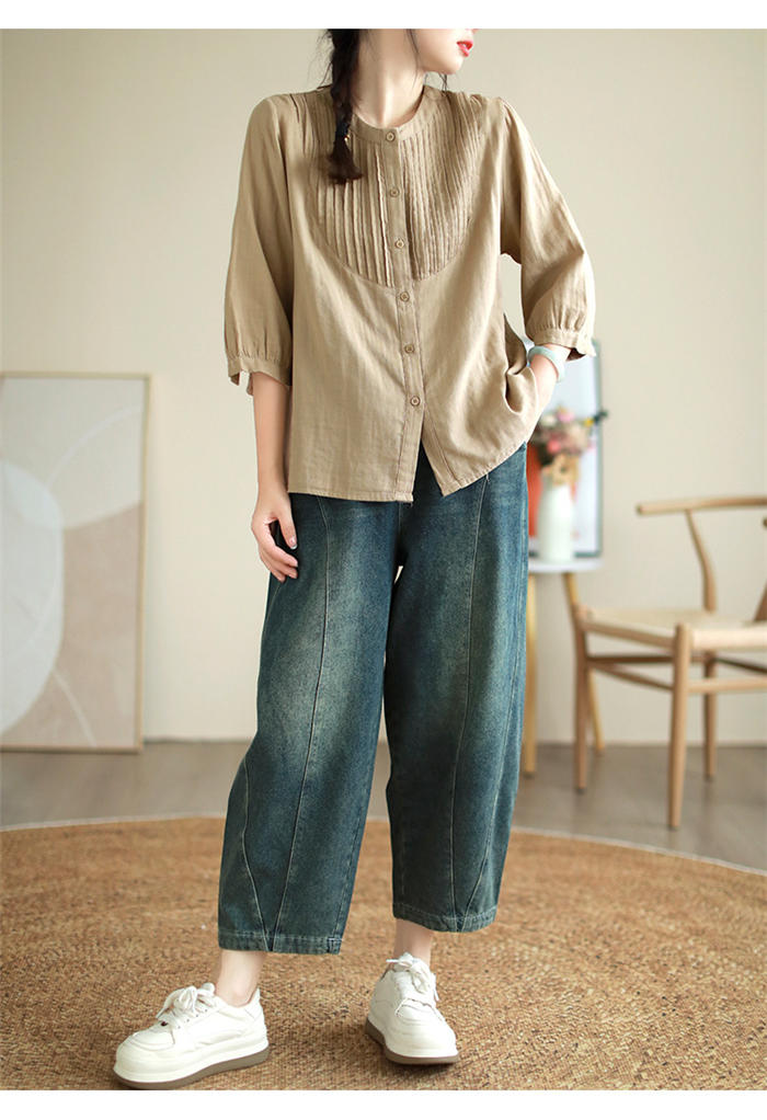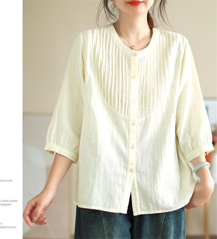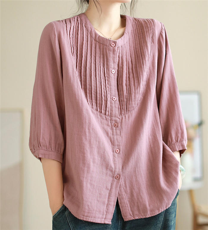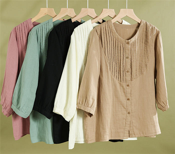 ガーゼ シャツ レディース 七分袖 春 レディースファッション 新登場! オフホワイト ピンク キャメル 黒 緑