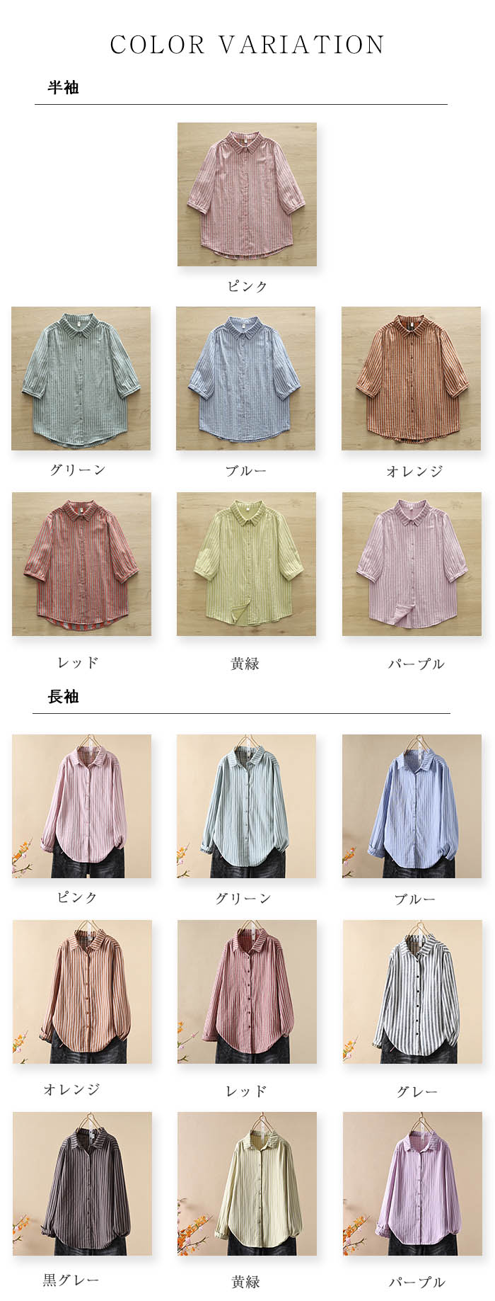 ガーゼ シャツ 2重ガーゼ シャツブラ トップス シャツ ブラウス 新登場! 長袖 半袖 ピンク グリーン ブルー オレンジ レッド 黄緑 パープル グレー 黒グレー