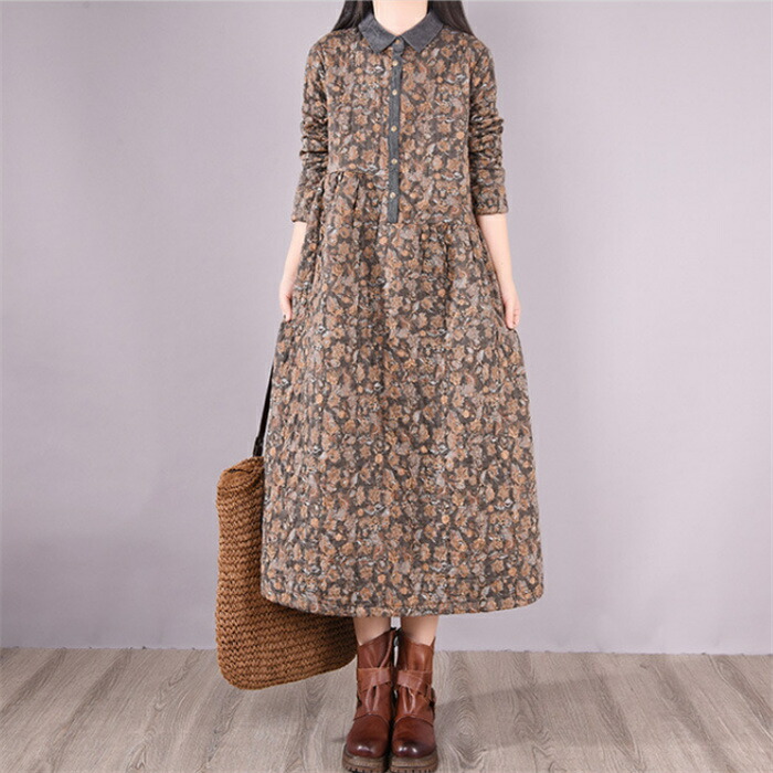 キルティング ワンピース 長袖 40代 ワンピース 新登場! グレー コーヒー色 M L XL XXL