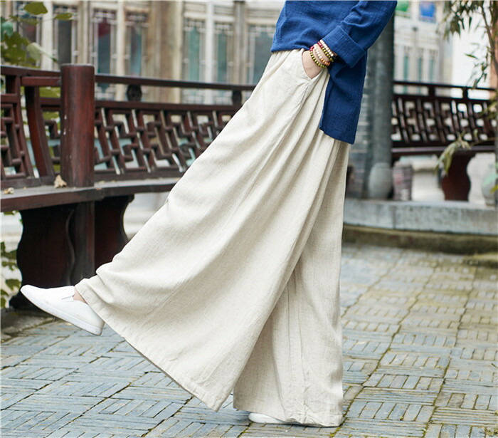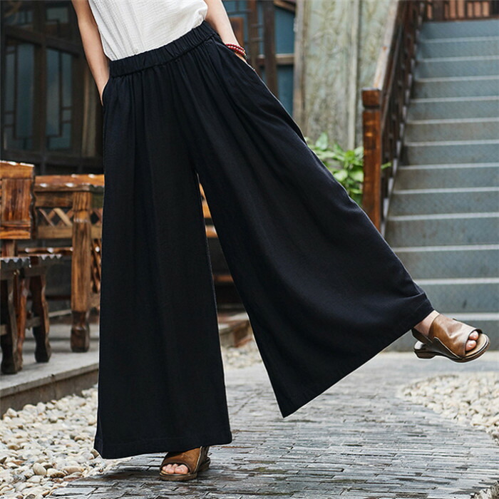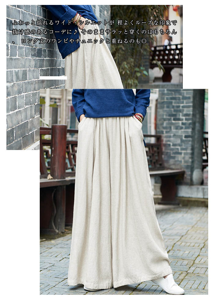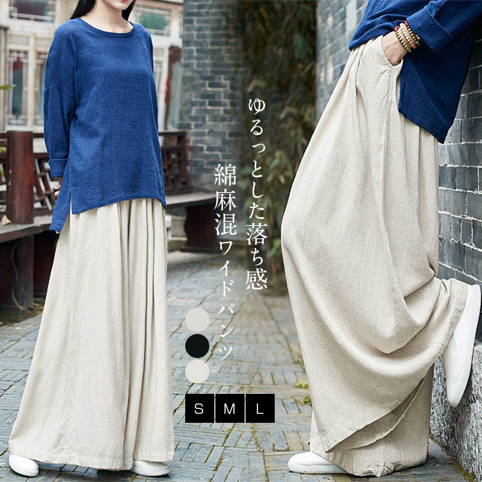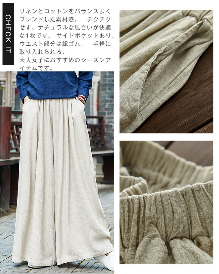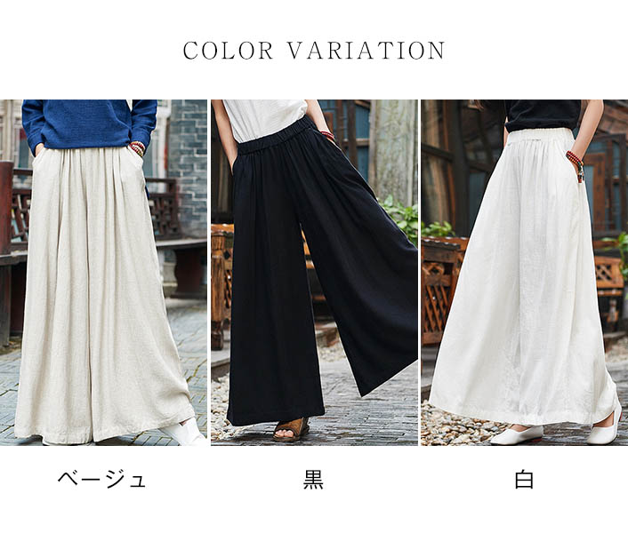 リネン ワイドパンツ レディース ガウ ボトムス パンツ 新登場! ベージュ 黒 白 S M L