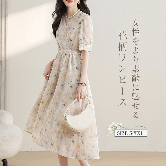 花柄 ワンピース レディース 半袖 夏 ワンピース 新登場! S M L XL XXL