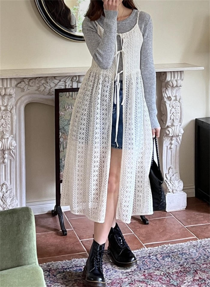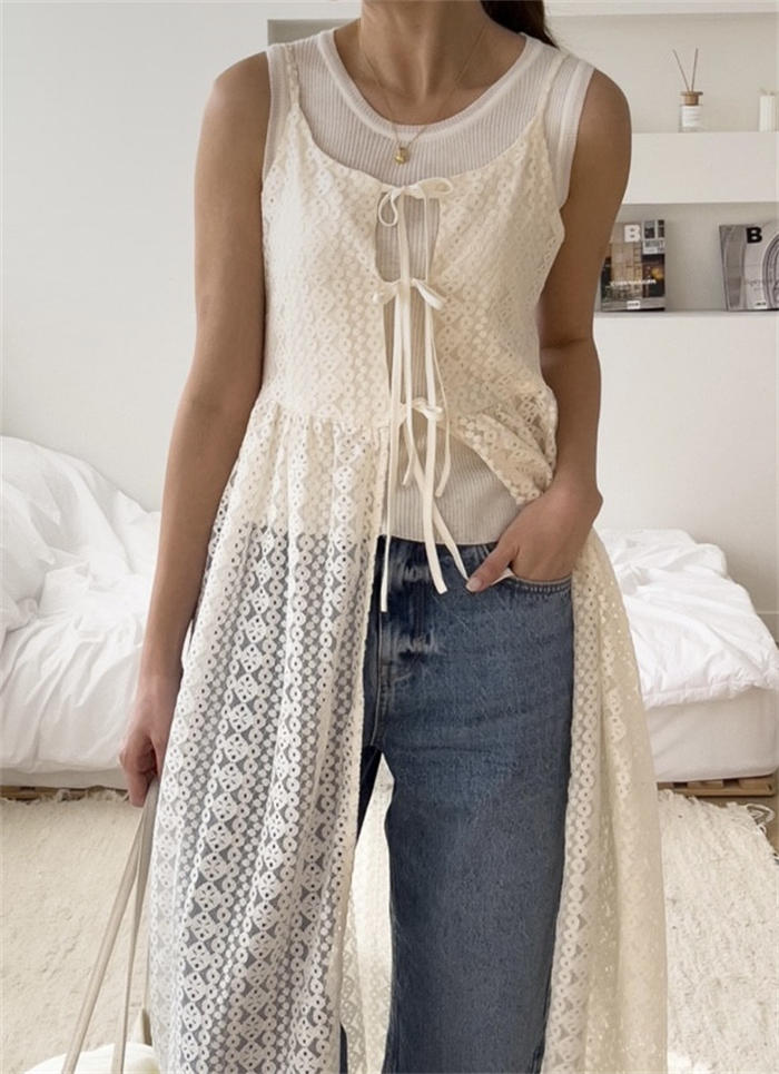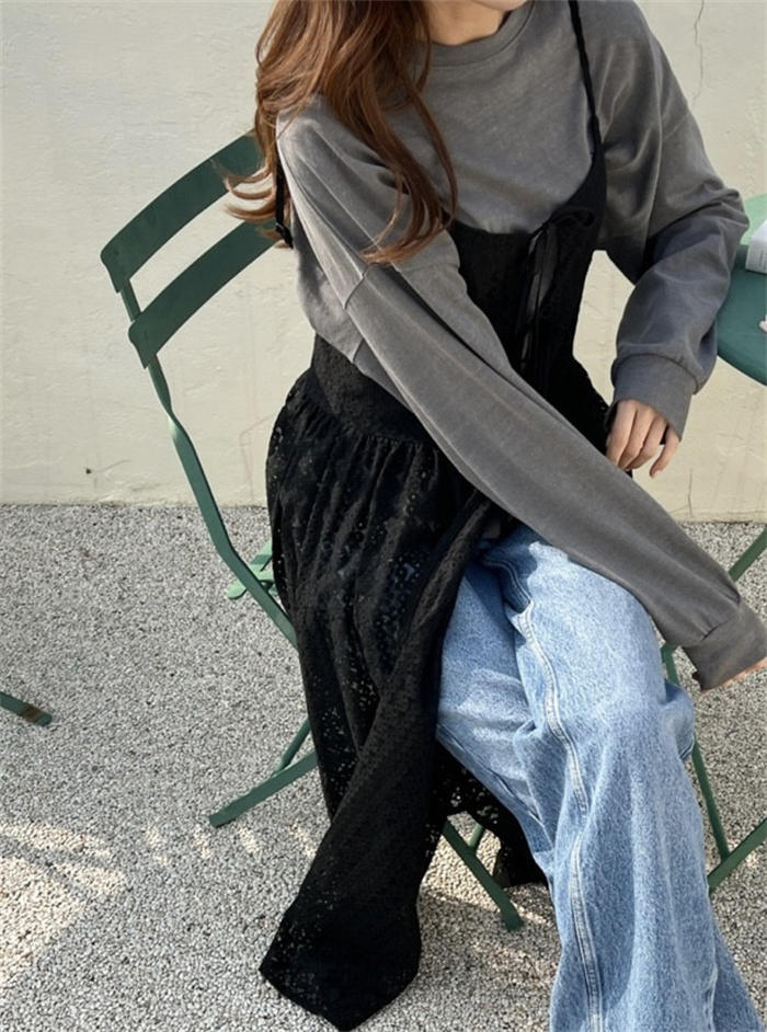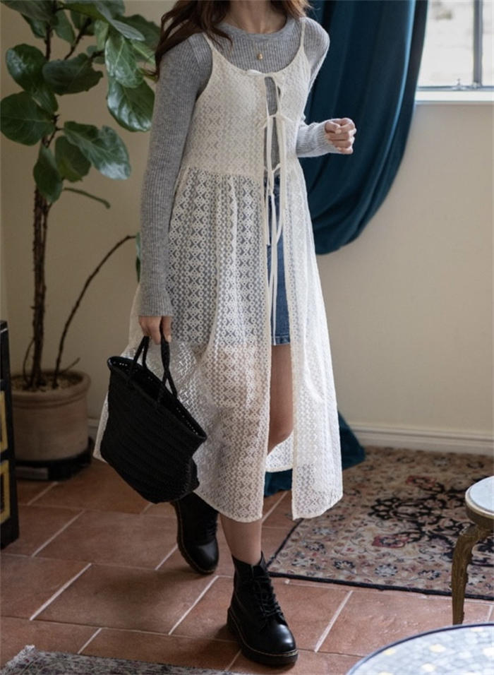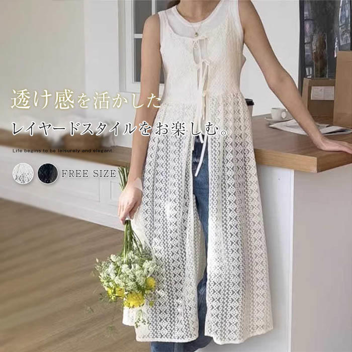 レイヤード レース キャミワンピース レディースファッション 続々登場 オフホワイト ブラック