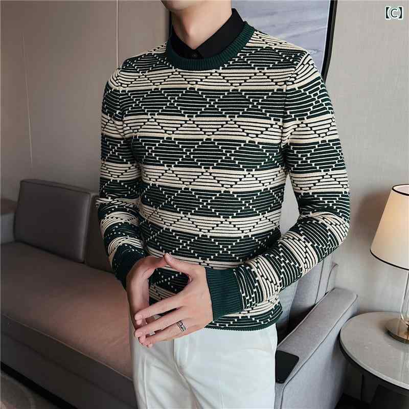 ニット メンズ 男性用 フェイクレイヤ その他 続々登場 A:カーキ B:黒 C:緑 D:アプリコット E:カーキ M L XL XXL 3XL 4XL
