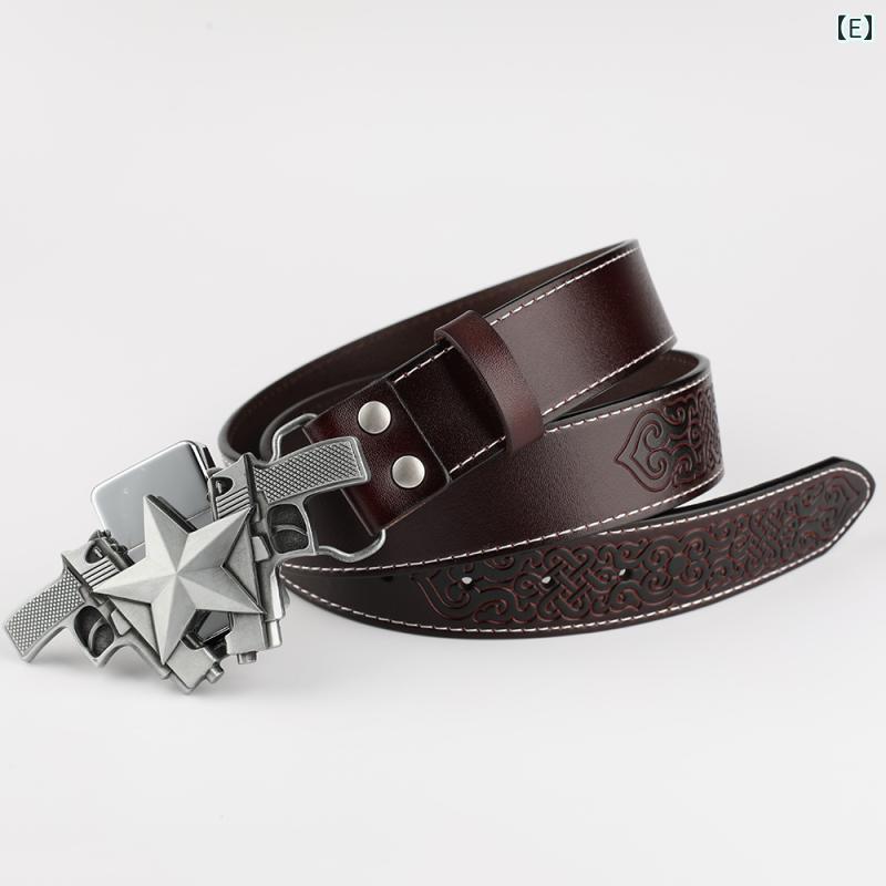 ベルト ウエスタン PUレザー ロック バッグ 小物 ブランド雑貨 新作 A:五芒星バックル 黒ベルト P B:五芒星バックル ブラウンベル C:五芒星バックル ホワイトベル D:エンボス加工施したブラックス E:ブラウン2層牛革エンボス加工 F:エンボス加工施したレッドブラ 100cm 105cm 115cm 120cm 125cm 130cm