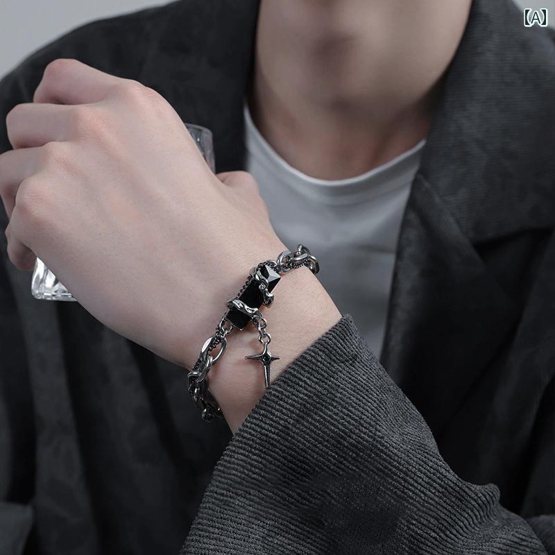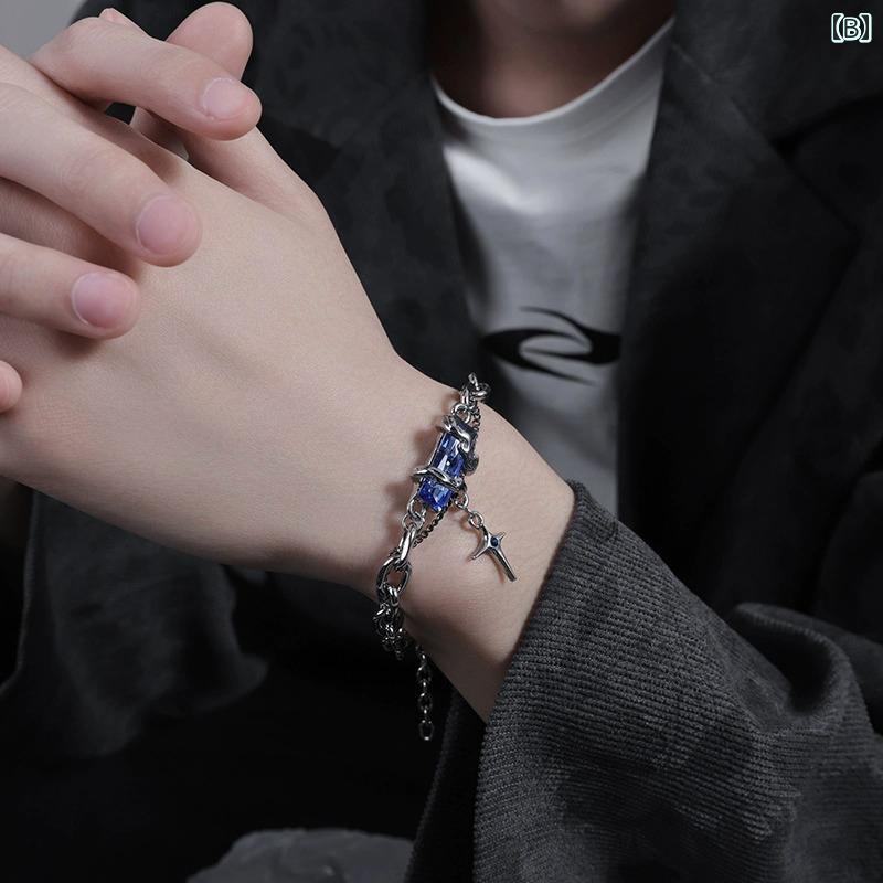 ブレスレット メンズ アクセサリー 小物 シルバー チェーン ラグジュアリー 調節可能 チタン鋼 金属製 おしゃれ プレゼント 黒 青 誕生日