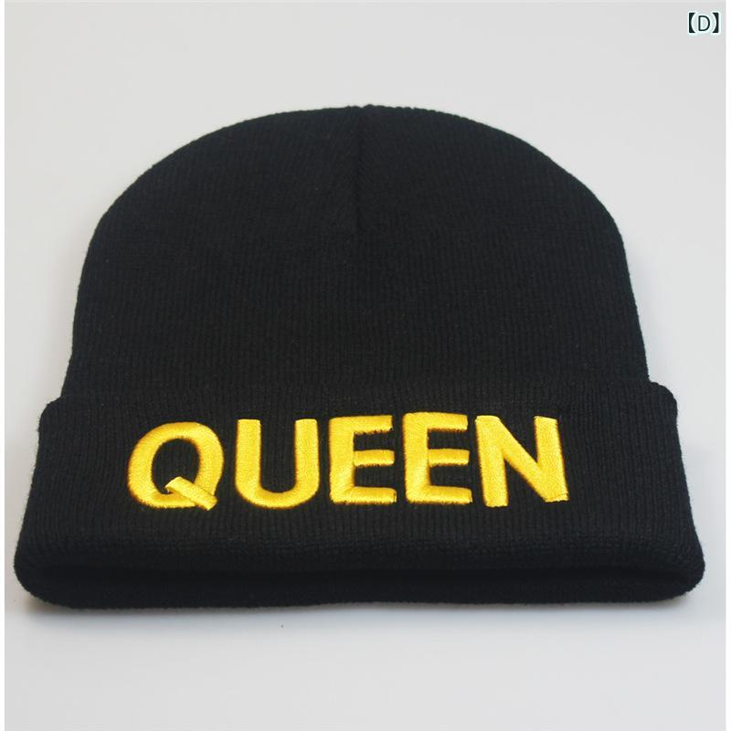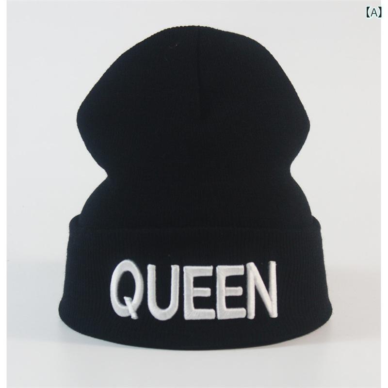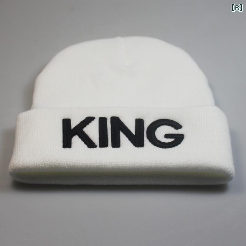 ニット帽 男女兼用 メンズ レディース バッグ 小物 ブランド雑貨 続々登場 A:黒白文字クイーン B:白キング C:黒金文字キング D:黒金文字クイーン E:黒白文字キング