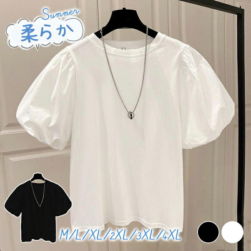 Tシャツ レディース 夏 母の日 カットソー トップス 半袖 UVカット 薄手 吸水 パフスリーブ 大きいサイズ かわいい シンプル ゆったり