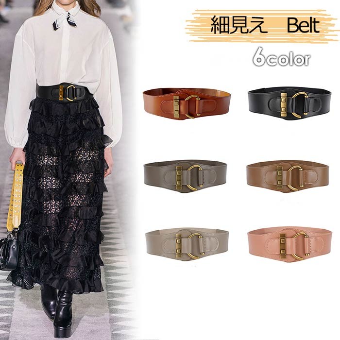 ベルト レディース ワンピース用 コート用 大きいサイズ 太 おしゃれ ゴムベルト 穴なし ゴム 黒 太め 茶色 太い ピンク 幅広 ウエストベルト 牛革 レザー バックル 太幅 ボリューム フレーム