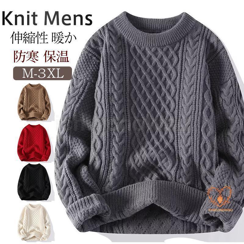 ニットセーター メンズ ニット セーター クルーネック プルオーバー ケーブルニット アウター 厚手 暖か 無地 ゆったり 通勤 冬服 おしゃれ 通学