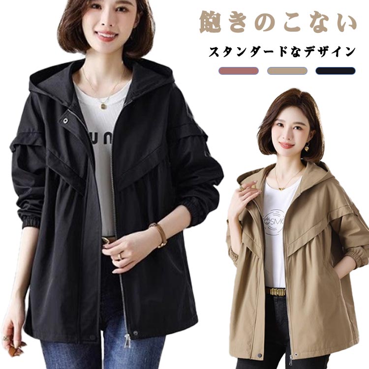 ジャケッ カジュアル 春秋 アウター 可愛い マウンテンパーカー きれいめ 羽織り 体型カバー 大きいサイズ ミドル丈 秋アウター