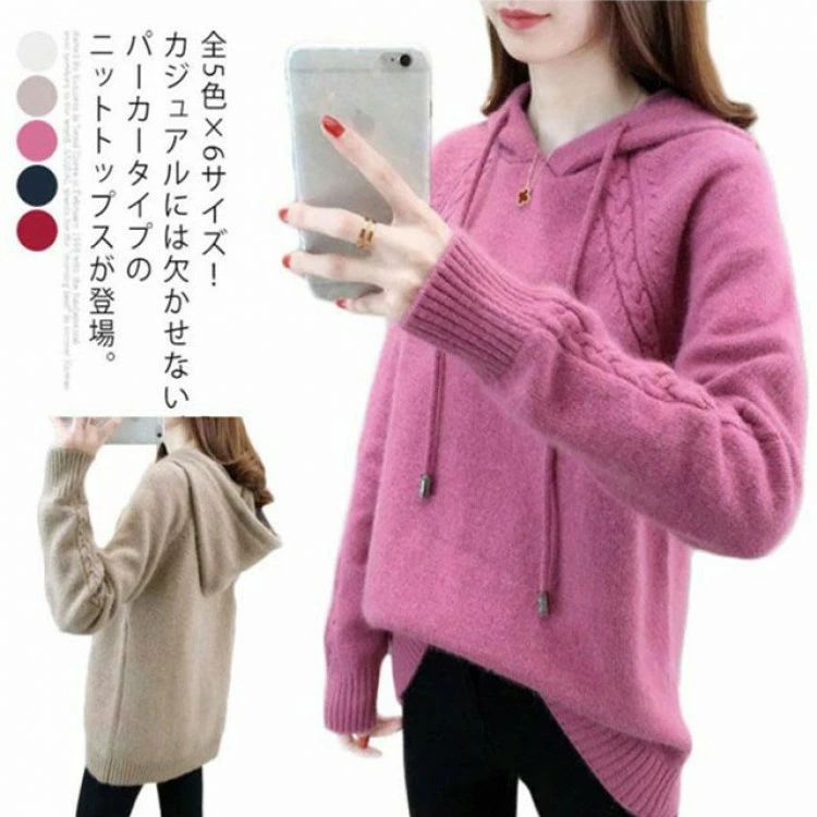 カジュアル ニットセーター フード付き パーカー ニット プルオーバー ニットトップス ニットパーカー ケーブル編み レディース