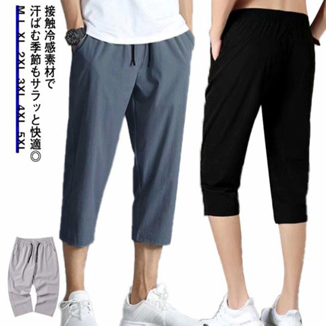接触冷感 メンズ パンツ ジャージ 夏 冷感 ジョガーパンツ ストレッチパンツ 速乾 軽量 アクティブパンツ スウェット 下 アンクルパンツ 大きいサイズ ジム フィットネス トレーニング