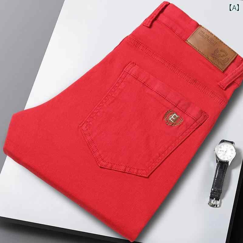 デニム メンズ ジーンズ カラージーンズ ストレート 伸縮性 ウォッシュ加工 赤色 黄色 デニムパンツ ジーパン Gパン ピンク系