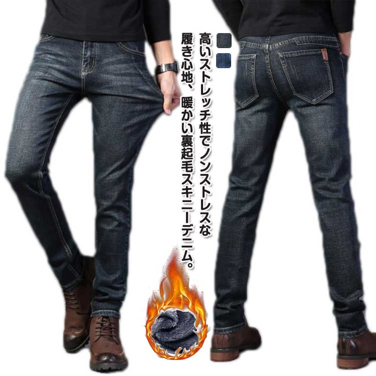 裏起毛 スキニーデニム メンズ デニムパンツ スリム ストレッチ ジーンズ ジーパン スキニーパンツ スリムパンツ 厚手 暖かい 保温 防寒 秋冬 防寒パンツ 裏起毛デニム カジュアル 暖パン