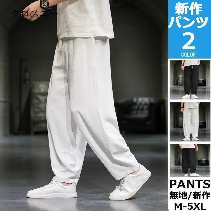 ワイドパンツルック メンズ ホワイトパンツ 無地 バギーパンツ ロングパンツ ボトムス 涼しい 春 秋 40代 30代 夏