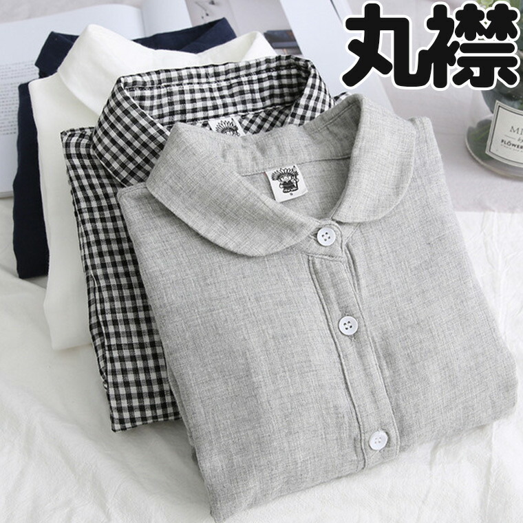 無地 レディース シンプル 長袖ブラウス シャツブラウス ギンガム ギンガムチェック 丸襟ブラウス シャツ