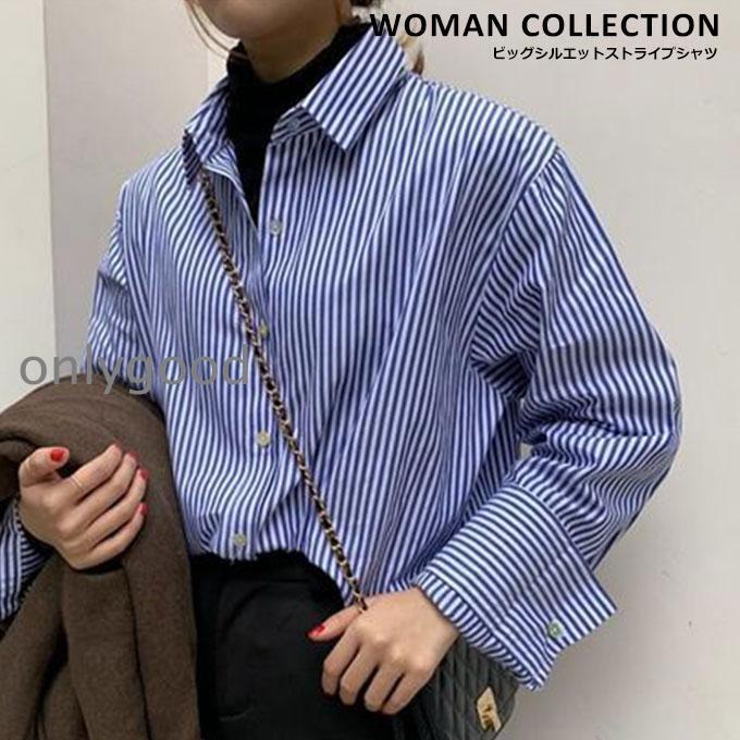 ストライプシャツ レディース きれいめ 長袖 春 通勤 オフィス ブルー ブルーストライプシャツ レディースファッション 青
