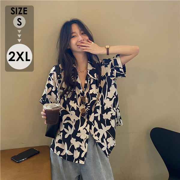 アロハシャツ レディース 夏物 リゾート シンプルデザイン ヴィンテージ風 ハワイアン フリーサイズ 開襟 半袖 花柄 オープンカラー ストリート ぽっちゃり m3g5 カジュアル