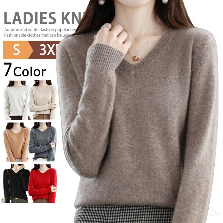 洗えるニットセーター レディース Vネックニットトップス 長袖無地 オフィスカジュアル ビジネスニットプルオーバー インナー大きいサイズ ニットセーター ニットTシャツ ゴルフウェア Vネックセーター