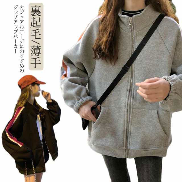 ジップパーカー レディース スウェット カーディガン カジュアル おしゃれ 大きいサイズ 学生 春 秋 ジャケット トレーナー 長袖 羽織り トップス ライトアウター 大人 体型カバー シン ゆったり